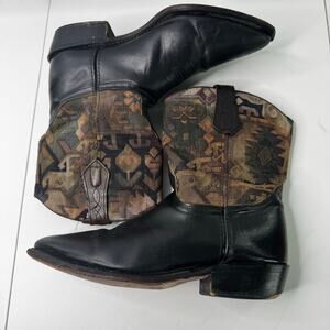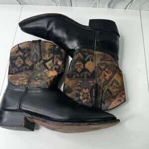 L.L. beanVintage Women’s 8 Cowboy Boots Black Leather Tapestry Western Boho USA