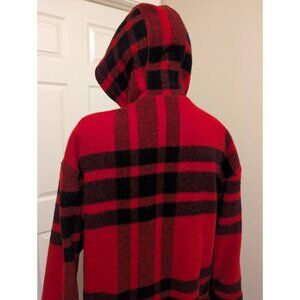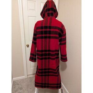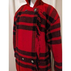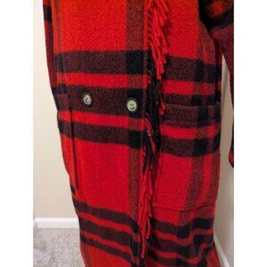 Vintage LL Bean Womens Large Long Red Wool Plaid Coat with Fringe