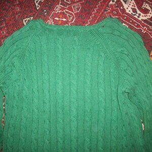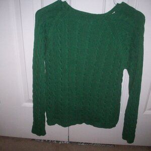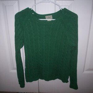 Vintage LL Bean Women's Size Small Cotton Thick Cable Knit Sweater Forest Green
