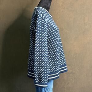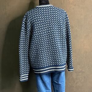 Cozy and classic, this vintage L.L. Bean women’s sweater is crafted from 100% lambswool and made in Jordan. Designed in a blue and white knit pattern with ribbed cuffs and hem, this pullover crewneck offers both warmth and timeless style. The XL Petite fit provides a slightly cropped length with a relaxed silhouette, making it perfect for layering or wearing on its own.