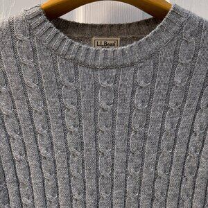 Vintage L.L Bean Wool Blend Fisherman Cable Knit Sweater Silver Size Large Tall