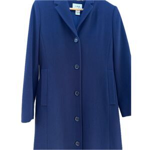 Vintage L.L. Bean Wool Cashmere Coat Women 4 Navy Long Trench Classic Warm