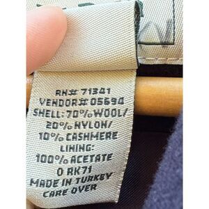 Material: 70% Wool / 20% Nylon / 10% Cashmere; 100% Acetate lining.