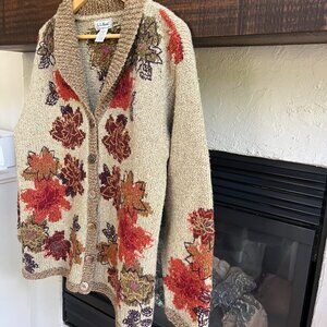 Vintage L.L. Bean Wool Grandpa Cardigan | Chunky Fall Leaf Sweater | 90s Herita