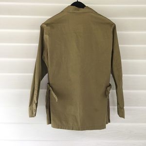 It's hard to let this one go, but it needs someone who wears it all the time and appreciates its glory! 100% cotton snap button casual olive/army green L.L. Bean safari jacket. Great vintage condition. Shoulders 18”, chest 20.5”, length 28”. Modeled on 5’3” size small.