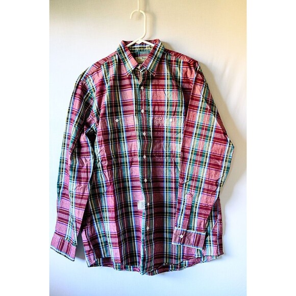 Vintage L.L. Bean tall L plaid button down chambry work shirt mens claret New