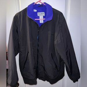 Black vintage LL Bean jacket with blue interior lining. Size Medium but fits slightly bigger. Has a small white spot near right chest and also has a name tag attached of previous owner. Smoke free home.