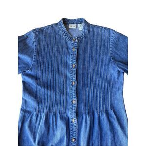 Vintage L.L Bean 100% Cotton Cottage Core Button Front Denim Dress