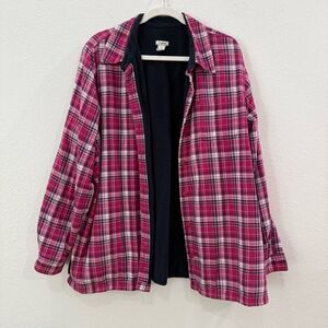 Vintage L.L. Bean Women's XL Oversized Pink Flannel Shacket Jacket Buttoned