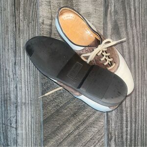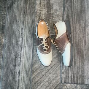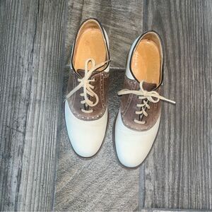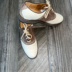 Vintage LL Bean Freeport Maine two toned leather tone tan & brown saddle shoes