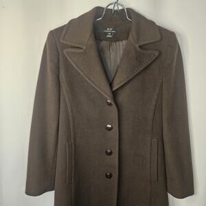 Vintage LL Collezioni Italia Cashmere Lambswool Long Coat Size 2P Brown Petite