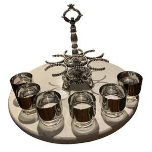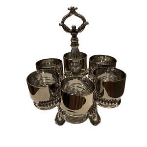 Add some vintage charm to your bar with this beautiful seven-piece set of L&L WMC 1970 #3121 Barware Brandy Glass Holders. These fancy holders are perfect for serving cold beverages and come with a set of six Brandy/Cognac Snifters. The silver pattern and normal glass type make them suitable for all occasions and the perfect addition to your glassware collection.
