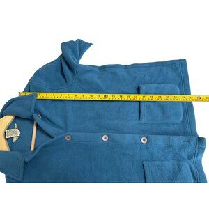 This L. L. Bean vintage fleece coat in blue is a must-have for any outdoor enthusiast. Women's size M, it's the perfect blend of utility and minimalist style with a pointed collar, button up front, long sleeves, and pockets.
