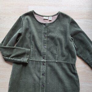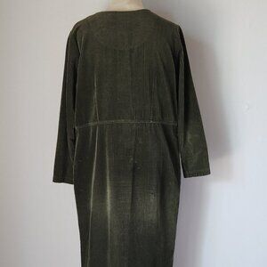 Vintage L.L.Bean Corduroy Maxi Cottage Dress Button Pocket Long Sleeve Green