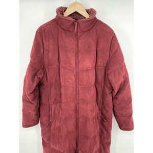 Vintage LL Bean Down Filled Quilted Burgundy Red Coat Size XL Faux Fur Long