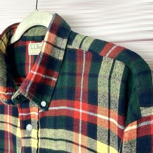 Vintage L.L. Bean Flannel Button Up Shirt Cotton Plaid Green Red Yellow size XL