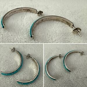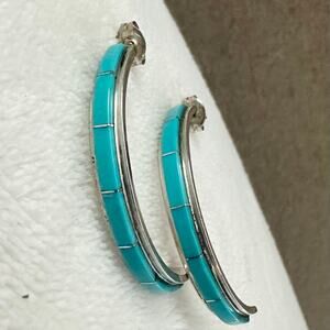 Vintage LM 925 Sterling Silver Turquoise Inlay Earrings