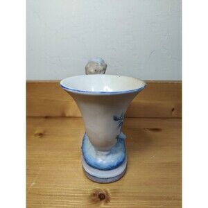 Note: see photos for some discoloration on top of horn. This Vintage L&M Inc Blue White Horn Blowing Boy Vase measures 5-1/2" in height with a 3-1/2" opening. Made of ceramic in a 1950s style, this vase features a charming horn blowing boy design in blue and white colors. Ideal for all occasions, this collectible piece is perfect for decorating a space with a touch of nostalgia and whimsy.