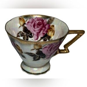 This Vintage LM ROYAL HALSEY tea cup and saucer set is a rare find, featuring an opalescent pearl and pink color and a floral rose pattern. Made of fine bone china in Japan during the 1960s, this two-piece set includes a footed cup and saucer with a diameter of 3.5 inches. Perfect for all occasions, this vintage set exudes elegance and charm, making it a sought-after collectible for tea enthusiasts and collectors alike. Excellent condition. No chips or cracks.