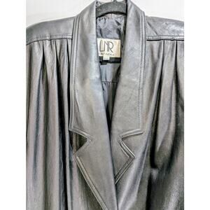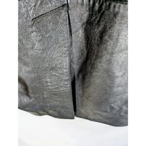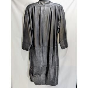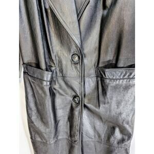 Vintage LNR Petites Genuine Leather Long Coat Black Shoulder Pads Back Vent PM