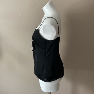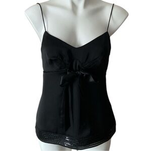 Vintage LOFT Y2K Black Satin Sequin Camisole With Bow Top Size 8 Petite