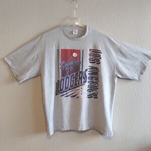 Vintage L 7 Los Angeles Dodger's 1991 Gray Striped Single Stitch T-Shirt XXL
