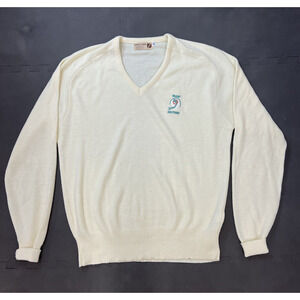 Vintage LOGO 7 Miami Dolphins Logo Ivory Acrylic Sweater Size XL NFL Football