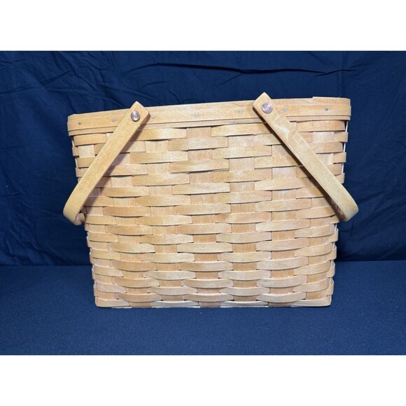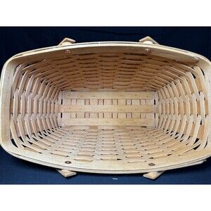 Crafted with care, this Vintage Longaberger Rectangular Basket boasts a traditional style that will complement any home decor. The basket features sturdy wooden construction, ensuring both durability and a timeless aesthetic. Measuring 15 1/2" in length, 11 1/4" in height, and 8 3/4" in width, it's the perfect size for a variety of uses. The piece is proudly made in the United States and highlights a classic rectangular shape with convenient handles, allowing for easy carrying or storage. Whether for everyday use or as a collector's item, this handcrafted basket embodies the quality and craftsmanship expected from the Longaberger brand.