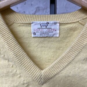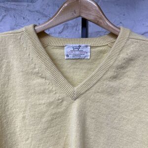 Vintage LORD JEFF 100% Virgin Australian Lambswool Yellow V-Neck Sweater Large
