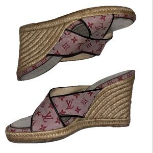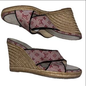 Vintage LOUIS VUITTON Espadrille Wedge Sandals Pink Monogram EU 38.5 US 8 Y2K