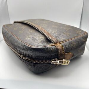 Luxurious Louis Vuitton clutch bag. Iconic monogram design. Stylish and practical for travel.