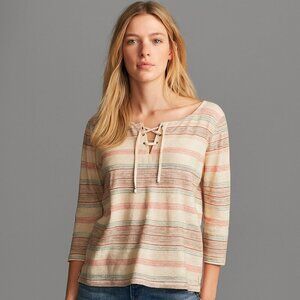 Vintage LRL Jeans Striped Lace-Up Top S Beige Pink Earthy Classic Preppy Boho