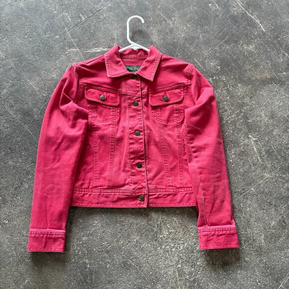 Vintage LRL Ralph Lauren Denim Jacket Womens M Petite Faded Red Trucker Jean