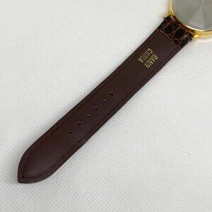 Vintage LTD men gold tone watch 33mm quartz analog brown leather band fits up up to 8”, in good condition battery installed