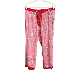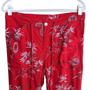Vintage LUCKY BRAND Lucky Beach Red Hula Lounge Pants – Tropical Bamboo Print Size Large