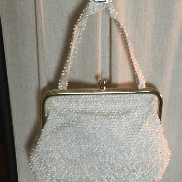Vintage LUMUREDCorde Bead White purse 8” x 10”