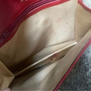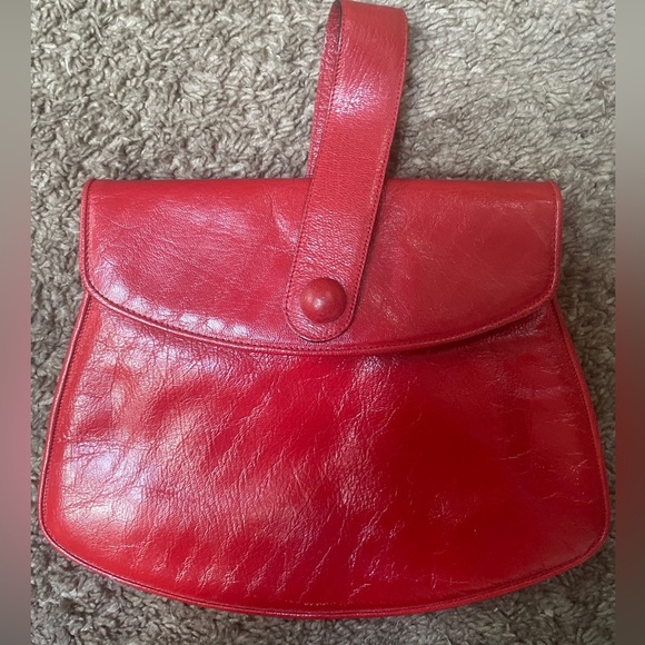 Vintage La Bagagerie Red Leather Top Handle Wristlet Clutch Handbag France