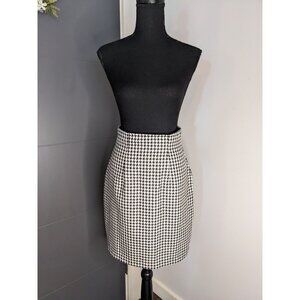 80's style high waisted pencil skirt in a classic houndstooth fabric. Size tag has been removed, but fits like a modern small. In excellent condition.