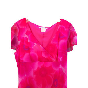 Vintage La Belle Hot Pink Floral Empire Waist V-Neck Flutter Sleeve Chiffon Flowy Bias Cut Lined Maxi Dress