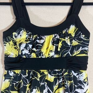Vintage La Belle Y2K Mini Dress Sz Med Black/Yellow Babydoll Milkmaid Tank Bow