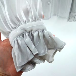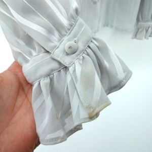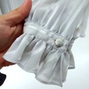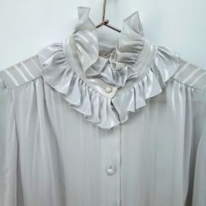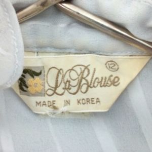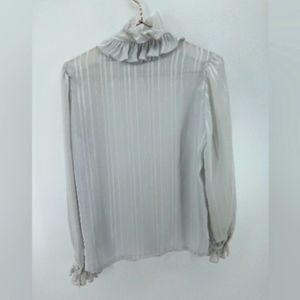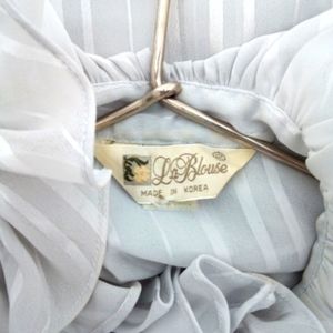 Vintage La Blouse Made in Korea Silver Ruffle Poof Top Semi Sheer Button 12