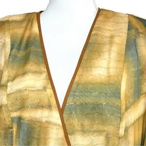 Tags: aesthetic, vintage sheer blazer, retro abstract watercolor print jacket, muted, metallic, southwestern, western, fringe, artsy, festival, academia, layer, lightweight, couture, rare, 80s fashion, boho, bohemian, funky, earth tones, earthy
