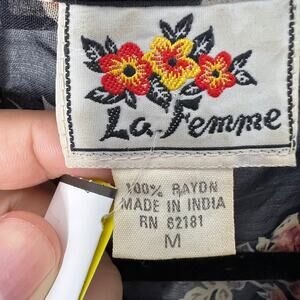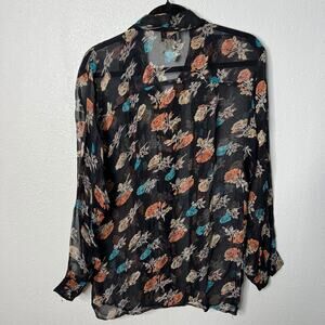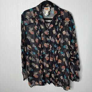 Vintage La Femme Black Multi Top Sheer Floral Button Up Long Sleeve Blouse Sz M