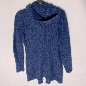 Vintage La Llama Blue Alpacaa Blend Knit Button Front Cardigan W Hood M