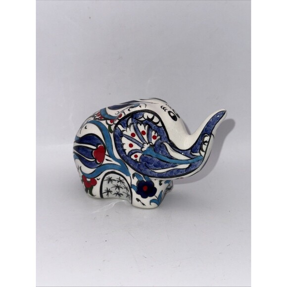 Vintage La Maison Ottomane Hand Painted Floral Ceramic Elephant Figurine