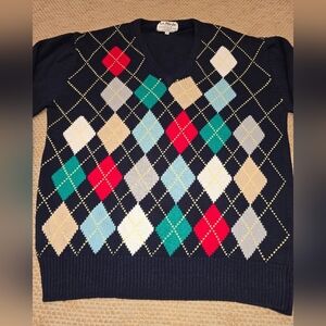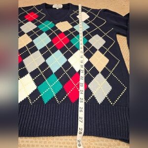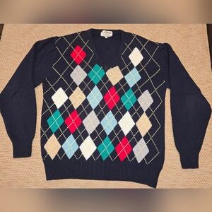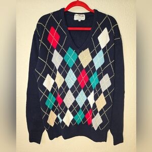 This vintage La Mode men's sweater is a must-have for any fashion-forward individual. Made in the USA with high-quality cotton material, this sweater boasts a classic fit and a colorful argyle/diamond pattern. The tight-knit fabric style and long sleeves make it perfect for the fall and winter seasons, while the soft and comfortable features ensure casual wear.