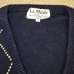 Vintage La Mode Mens Sweater Size Large Navy Blue Made In USA 💯 cotton