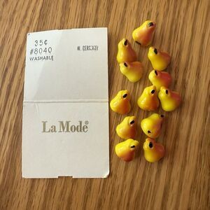 This is a lot of 12 vintage La Mode plastic pear buttons. They are in very good condition.