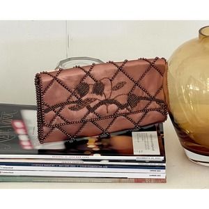 Vintage La Regale Japan Bronze Satin Beaded Envelope Clutch