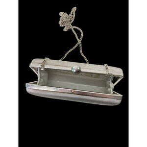 Vintage La Regale Metallic Silver Clutch Purse With Chain Strap & Snap Closure